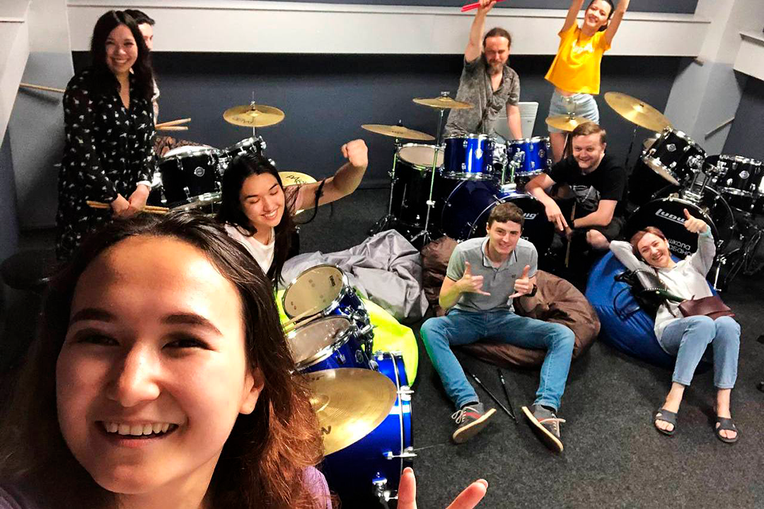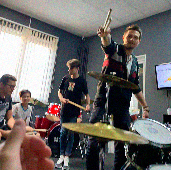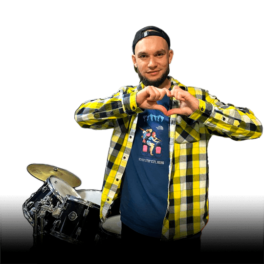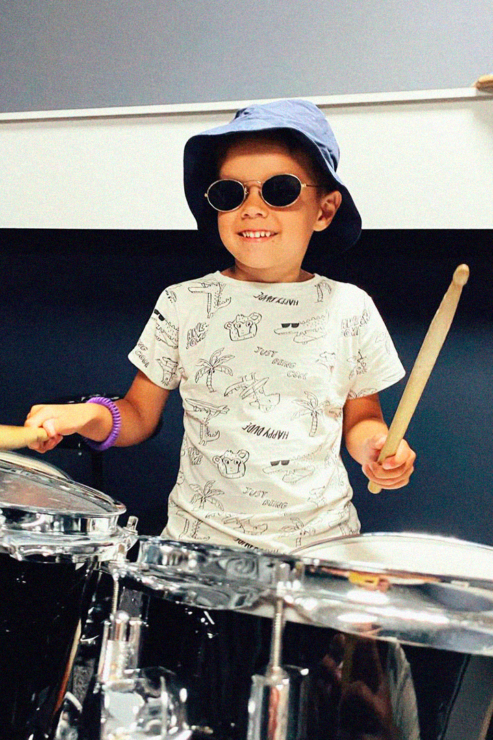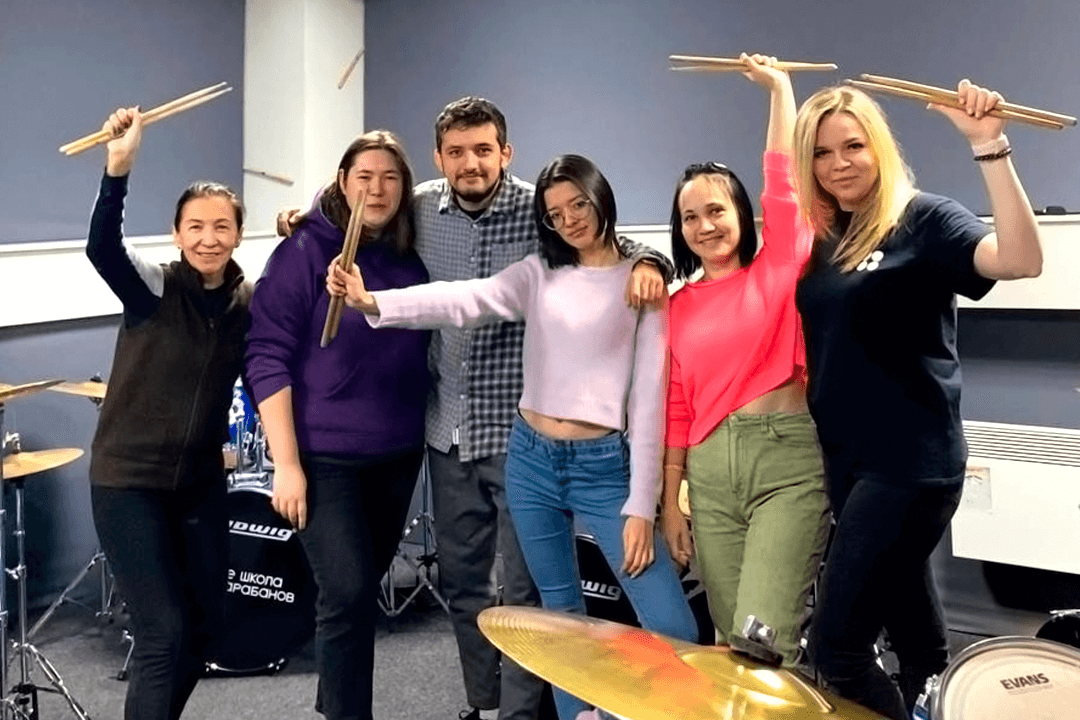 Сначала мы коротко расскажем из чего состоит барабанная установка, потом научимся правильно держать палочки и, наконец, вы сядете за барабанную установку и будете играть!